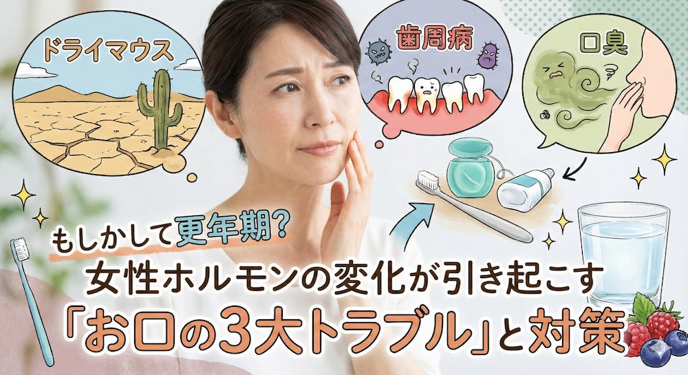もしかして更年期?女性ホルモンの変化が引き起こす「お口の3大トラブル」と対策
